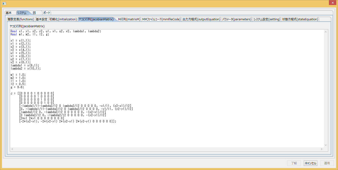 ヤコビ行列Jの設定(ヤコビ行列)