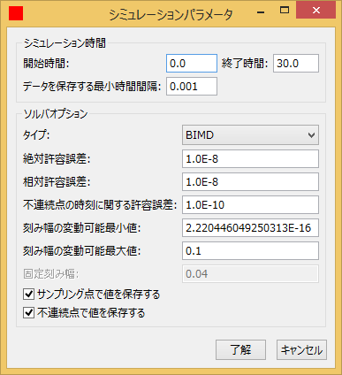 - シミュレーションパラメーターの設定